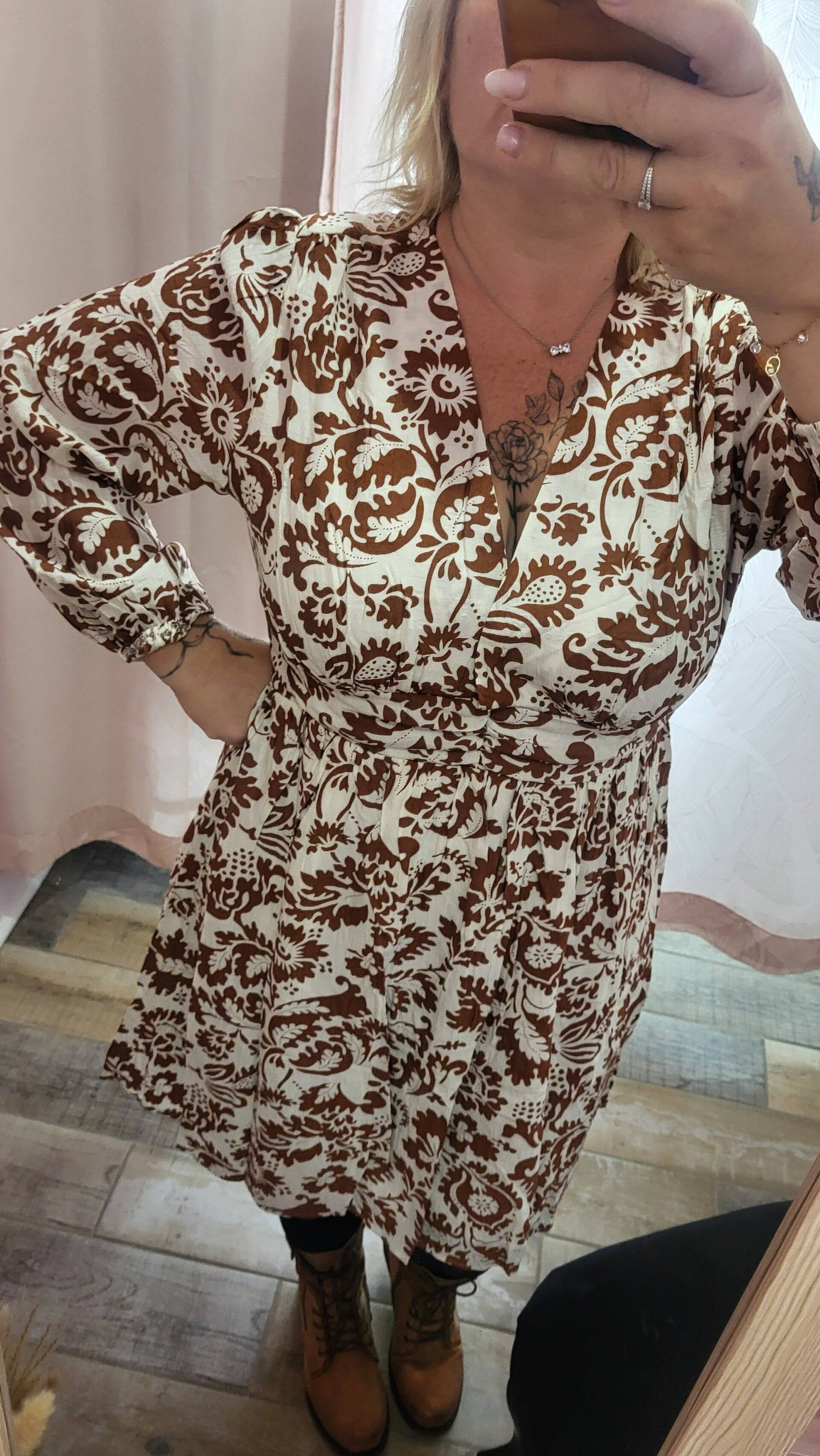 Jolie robe de couleur blanche et rouille.